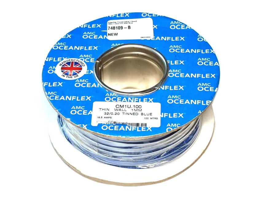 Blue 1.0mm/17 AWG Oceanflex Tinned Single Core Thin Wall Cable (21 amps) 100m
